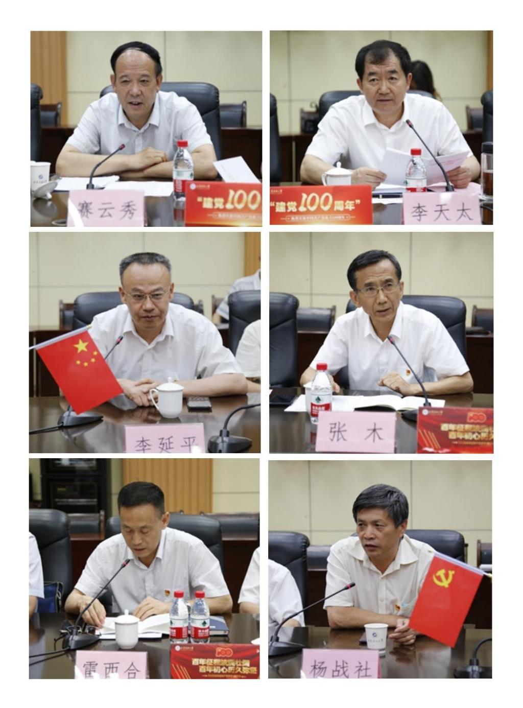 校黨委書記賽云秀,校黨委副書記、校長李天太,校黨委副書記、紀(jì)委書記、監(jiān)察專員李延平,校黨委副書記張木、雷西合,副校長楊戰(zhàn)社等6位中心組成員,全文領(lǐng)學(xué)了習(xí)近平總書記在慶祝中國共產(chǎn)黨成立100周年大會上的重要講話。