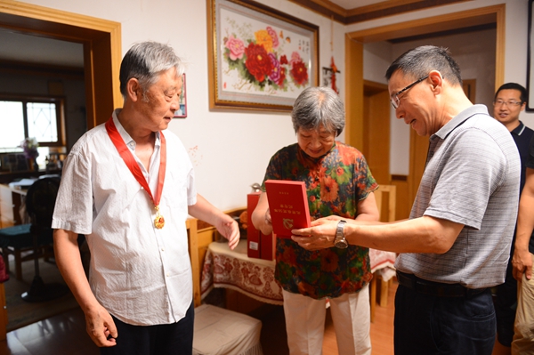 在“慶祝中華人民共和國成立70周年”紀(jì)念章獲得者、離休干部薛紀(jì)元家中,校黨委書記賽云秀為薛紀(jì)元和姚桂榮夫婦佩戴了“光榮在黨50年”紀(jì)念章,仔細(xì)詢問了他們的身體健康狀況和生活情況。他指出,在建黨100周年之際,黨中央決定頒發(fā)“光榮在黨50年”紀(jì)念章,體現(xiàn)了以習(xí)近平同志為核心的黨中央對老黨員的政治關(guān)懷,體現(xiàn)了黨和人民對老黨員歷史貢獻(xiàn)的充分肯定,希望他們保持愉悅身心、安享晚年生活,并積極為學(xué)校提出寶貴意見建議,助力學(xué)校改革發(fā)展。隨后,賽書記慰問了“慶祝中華人民共和國成立70周年”紀(jì)念章和“中國人民志愿軍抗美援朝出國作戰(zhàn)70周年”紀(jì)念章獲得者董玉田、李秋華夫婦和困難老黨員陳寶江,并為他們佩戴了“光榮在黨50年”紀(jì)念章。在陳寶江同志家中,賽書記親切詢問其身體狀況、家庭收入、醫(yī)藥費(fèi)報(bào)銷情況以及生活中存在的困難和問題,叮囑相關(guān)部門要多關(guān)心老黨員的生活,幫助他們解決實(shí)際問題。