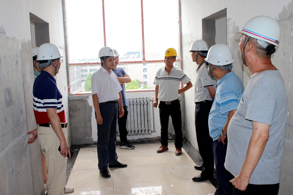 楊戰(zhàn)社副校長一行先來到19#20#學生公寓樓項目工地,目前工程已進入收尾的攻堅階段。在施工現(xiàn)場,楊戰(zhàn)社副校長重點對工程的質(zhì)量及安全措施進行了檢查。他強調(diào):項目部及監(jiān)理單位要進一步強化對安全生產(chǎn)的重視,嚴守安全紅線,嚴格落實監(jiān)管職責,杜絕一切安全生產(chǎn)責任事故發(fā)生;暑期高溫炎熱,施工人員及管理人員一定要做好防暑降溫工作;在保證質(zhì)量、安全的前提下,確保按期竣工驗收、投入使用。