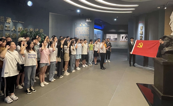 講黨課比賽開始前,學(xué)校組織各院(系)新發(fā)展黨員代表在鐵人王進(jìn)喜紀(jì)念館集中進(jìn)行了入黨宣誓活動(dòng),在黨委組織部常務(wù)副部長種宇宏老師的帶領(lǐng)下,全體新發(fā)展黨員代表面對黨旗,高舉右手莊嚴(yán)宣誓,表達(dá)了對黨的鄭重承諾和為黨的事業(yè)奮斗終生的決心。