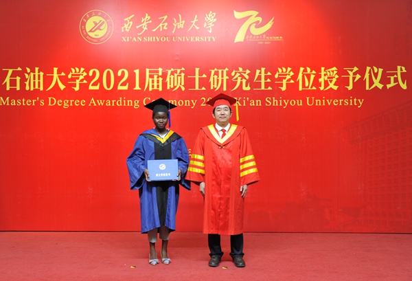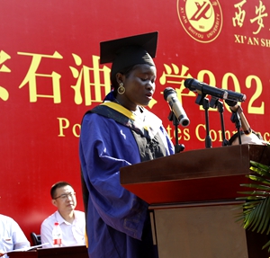 地球科學(xué)與工程學(xué)院高棒棒和石油工程學(xué)院來(lái)自加蓬共和國(guó)的歐碧麗同學(xué),分別代表2021屆碩士研究生和碩士留學(xué)生在發(fā)言中向悉心培育自己的母校、師長(zhǎng)和親人表示感謝,同時(shí)表達(dá)了自身繼續(xù)努力、續(xù)寫輝煌的信心和決心。