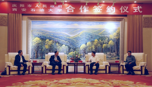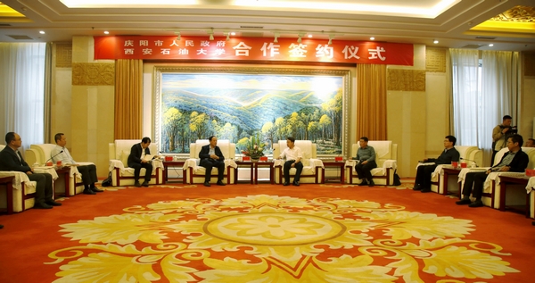 我校黨委書記賽云秀對(duì)學(xué)校整體發(fā)展情況進(jìn)行了介紹。他指出,多年來學(xué)校堅(jiān)持以石油精神辦學(xué)、鐵人精神育人、延安精神鑄魂,積淀形成了“愛國奉獻(xiàn)、艱苦奮斗、科學(xué)求實(shí)、開拓進(jìn)取”的辦學(xué)精神和“為人誠實(shí)、基礎(chǔ)扎實(shí)、作風(fēng)樸實(shí)、工作踏實(shí)、開拓創(chuàng)新”的人才培養(yǎng)特色,培養(yǎng)了一大批石油石化人才。同時(shí),學(xué)校堅(jiān)持依托學(xué)科、行業(yè)和區(qū)位優(yōu)勢(shì),全力服務(wù)甘肅省高端能源化工產(chǎn)業(yè)發(fā)展,加強(qiáng)與甘肅石油石化企業(yè)的合作交流與科研攻關(guān),取得了顯著成果和效益。他表示,慶陽市能源資源富集,歷史文化厚重,希望雙方進(jìn)一步加強(qiáng)合作,共同推動(dòng)油氣資源開發(fā)利用,實(shí)現(xiàn)互利共贏。此次與慶陽市簽署合作框架協(xié)議后,學(xué)校將充分發(fā)揮科技成果研發(fā)和人才優(yōu)勢(shì),與慶陽市相關(guān)單位和部門加強(qiáng)合作、共謀發(fā)展,為慶陽經(jīng)濟(jì)社會(huì)發(fā)展做出新的貢獻(xiàn)。