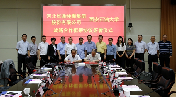 陳軍斌副校長與張文勇董事長分別代表西安石油大學(xué)和河北華通線纜集團(tuán)股份有限公司簽署了校企戰(zhàn)略合作框架協(xié)議。協(xié)議中約定雙方今后將在科研合作與技術(shù)交流、人才培養(yǎng)等幾個方面開展全面合作。