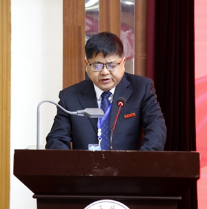 李天太校長代表學(xué)校作了《開啟新征程勇?lián)率姑鼕^力譜寫學(xué)校高質(zhì)量發(fā)展新篇章》的工作報(bào)告。他首先從七個(gè)方面,對學(xué)校“十三五”期間的主要工作進(jìn)行了回顧:一是學(xué)校全面從嚴(yán)治黨深入推進(jìn);二是學(xué)校學(xué)科建設(shè)取得歷史性躍升;三是學(xué)校師資隊(duì)伍建設(shè)成效顯著;四是學(xué)??蒲袑?shí)力持續(xù)提升;五是學(xué)校人才培養(yǎng)質(zhì)量持續(xù)提高;六是學(xué)校對外合作交流日益廣泛;七是學(xué)校服務(wù)保障能力持續(xù)提升。