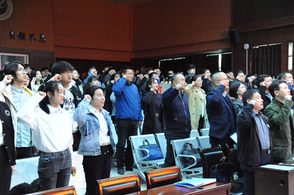 全體參會(huì)師生進(jìn)行了第六屆“陽光護(hù)航”心理育人宣傳季活動(dòng)宣誓,啟動(dòng)儀式在深情而有力的歌曲《仰望星空》中結(jié)束。
