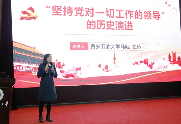 為深入學習貫徹習近平總書記在學校思想政治理論課教師座談會上的重要講話精神,促進思政課程和課程思政有機融合,3月12日下午,我校在雁塔校區(qū)學術報告廳舉辦首場陜西省思政課“大練兵”獲獎教師教學展示匯報活動。校黨政領導賽云秀、張木、陳軍斌、程永清出席活動。馬克思主義學院左玲、石少虎、程麗玥、鄭偉四位思政課“大練兵”獲獎教師,相關職能處室負責人,理學院、外國語學院等5個院系負責人和教師代表參加。程永清主持本次教學展示活動。
