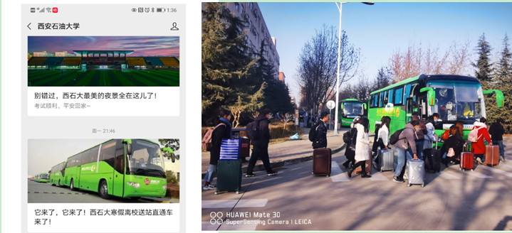 三是試運(yùn)行學(xué)生離校送站直通車。寒假離校高峰期,又趕上疫情防控的嚴(yán)峻形勢(shì),使學(xué)生的離校返程更加不便。后勤管理處在了解這一困難后,為方便學(xué)生平安順利離校,減輕攜帶行李換乘的不便,解決天氣寒冷學(xué)生打車難、打車貴的問題,并防范學(xué)生搭乘黑車的風(fēng)險(xiǎn),又在關(guān)鍵時(shí)期“想學(xué)生之所想,急學(xué)生之所急”,緊緊圍繞以學(xué)生為本的服務(wù)理念,貼近學(xué)生需要,積極落實(shí),在兩校區(qū)直通車的成功運(yùn)行經(jīng)驗(yàn)的基礎(chǔ)上,于2021114、15日兩天試運(yùn)行學(xué)生送站直通車。離校送站直通車設(shè)西安火車站、咸陽國際機(jī)場(chǎng)、西安北站、城南客運(yùn)站和三爻地鐵口四條專線,每條專項(xiàng)根據(jù)學(xué)生需求實(shí)時(shí)設(shè)置多個(gè)班次,極大地方便了疫情期間學(xué)生的離校返程,得到了同學(xué)們的高度關(guān)注。據(jù)統(tǒng)計(jì),離校送站直通車兩天內(nèi)累計(jì)開行班次35個(gè),運(yùn)送離校學(xué)生達(dá)1700余人次。
