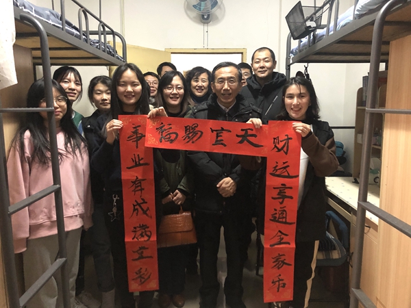 會后,校黨委副書記張木帶領(lǐng)各院系黨委(黨總支)書記、副書記、全體輔導(dǎo)員深入學(xué)生宿舍、教室,看望元旦假期留校學(xué)生,代表學(xué)校向大家致以新年的問候。張木副書記仔細(xì)詢問同學(xué)們的學(xué)習(xí)和生活情況,并勉勵同學(xué)們志存高遠(yuǎn)、腳踏實地、珍惜時光、發(fā)奮成才,用奮斗去譜寫青春的華彩篇章。