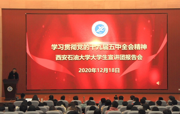 為學(xué)習(xí)宣傳貫徹黨的十九屆五中全會精神,推動全會精神入腦入心,按照省委教育工委、省教育廳的相關(guān)安排,我校成立了貫徹黨的十九屆五中全會精神大學(xué)生宣講團(tuán)。1218日下午,宣講團(tuán)同時(shí)在鄠邑校區(qū)弘石報(bào)告廳、雁塔校區(qū)第五會議室開講。校黨委副書記雷西合,黨委宣傳部、馬克思主義學(xué)院負(fù)責(zé)人,500余名研究生、本科生參加了宣講會。