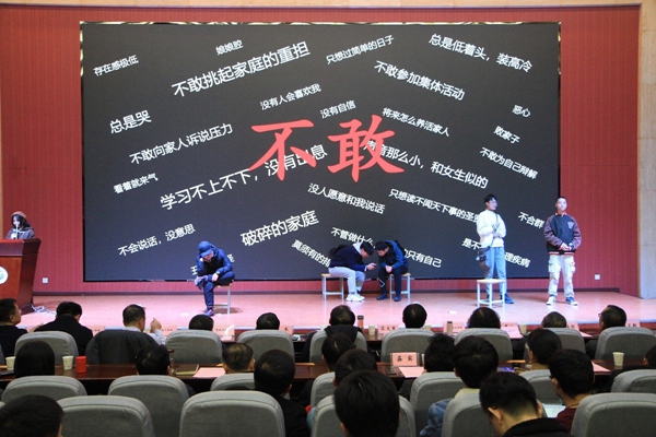 隨后,我校2020年心理育人優(yōu)秀實踐作品的部分成果進行了匯報演出。地質2002班心理主題班會《學會交往,與愛同行》將德育與心育有機融合,體現(xiàn)了管理育人的作用。校園心理情景劇《人從眾,忘初衷》《蛻變》《獨白》《消融的面具》《生而偉大》,以學生為主體,結合自己的成長經(jīng)歷和思想感悟,從身邊人和身邊事入手,巧妙利用心理學技巧結合專業(yè)來展現(xiàn)內心沖突,演繹成長過程的不同色彩。最后,校團委、各院(系)心理專干、思想教育科少數(shù)民族學生工作辦公室、學生心理成長指導中心、心理委員聯(lián)合協(xié)會、大學生心理協(xié)會共同表演的手語舞《堅信愛會贏》,將匯報會推向了高潮,師生用無聲的語言傳達出西石大師生在疫情面前不退讓的豪邁氣概,表達出戰(zhàn)勝疫情的昂揚斗志,堅信中華民族萬眾一心,愛一定會贏,凜冬嚴寒終將過去,春日陽光必將普照!