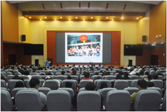 1126日晚,由校團(tuán)委主辦的第六十七期明德大講堂在鄠邑校區(qū)弘石學(xué)術(shù)報(bào)告廳舉辦。中國(guó)體育新聞工作者協(xié)會(huì)副秘書長(zhǎng)曹暉應(yīng)邀作了題為《體育強(qiáng) 中國(guó)強(qiáng)》的講座,鄠邑校區(qū)300余名師生聽(tīng)取了講座。