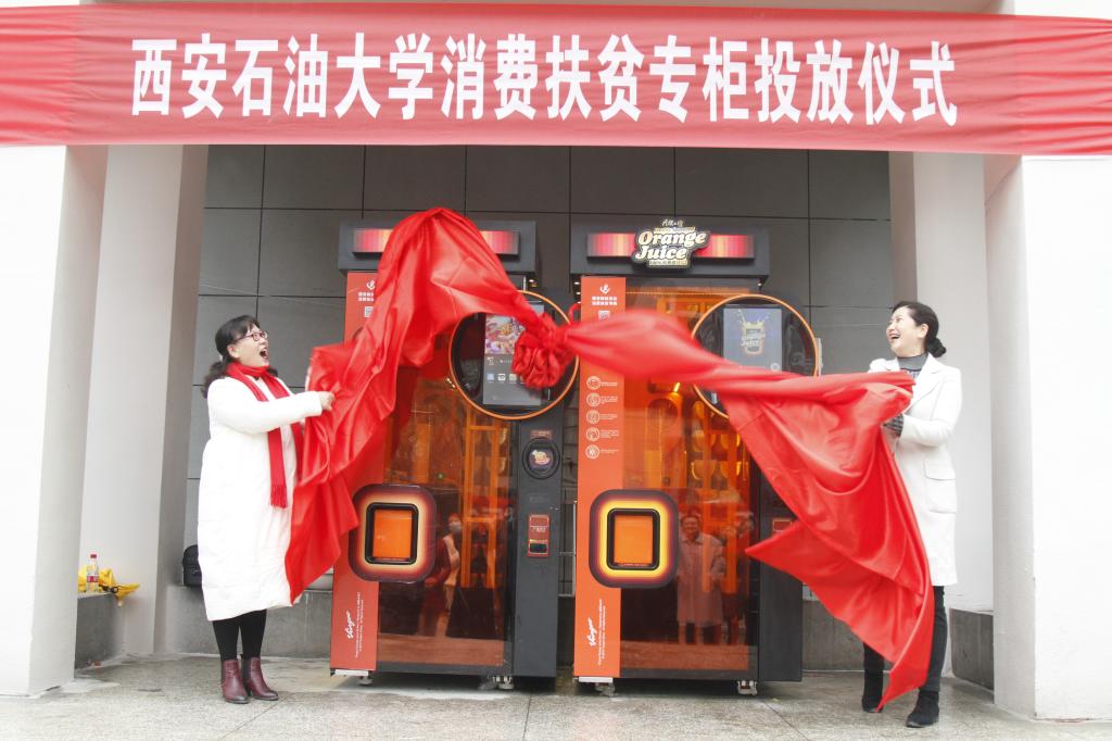 儀式上,校工會主席袁玎致辭。她談到,2020年是全面建成小康社會目標實現(xiàn)之年,也是脫貧攻堅決戰(zhàn)決勝、全面收官之年。此次貫徹落實陜西省委教育工委扶貧專柜進高校的工作要求,我校黨委高度重視,校黨委副書記雷西合親自安排部署前期工作,國資處、后勤處等部門給予了大力支持,我校與上海巨昂科技有限公司達成合作協(xié)議,確保雁塔校區(qū)扶貧專柜順利投放落地。