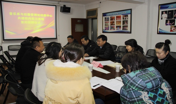 為推進校內(nèi)協(xié)同育人機制,1125日上午,我校音樂系與后勤管理處幼教中心共建校內(nèi)實習(xí)基地簽約授牌儀式在音樂系會議室舉行。副校長蘇文甫,后勤管理處及幼教中心、音樂系相關(guān)負(fù)責(zé)人參加會議。儀式由音樂系黨總支書記孟開元主持。