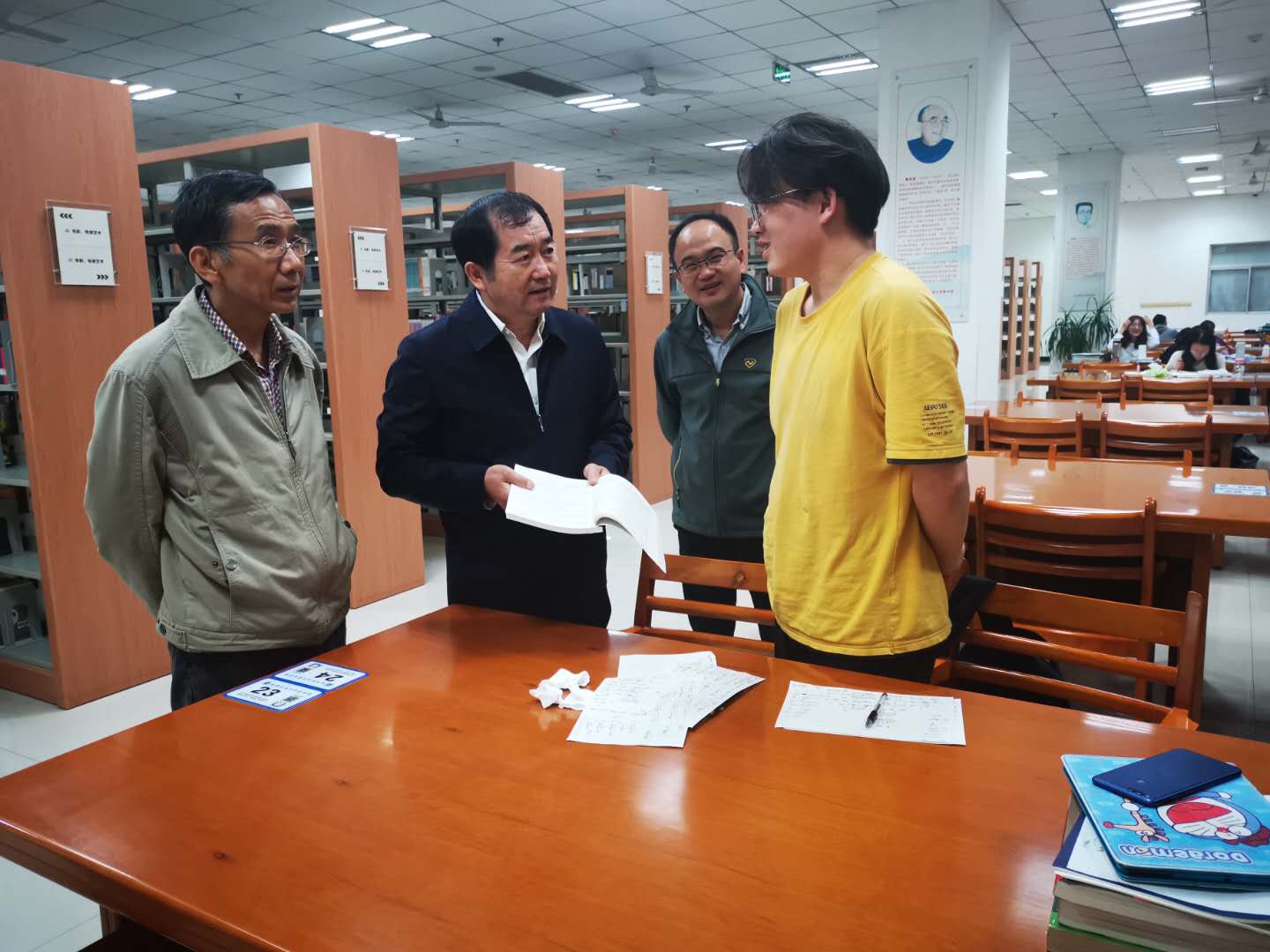 在圖書館閱覽室和理學(xué)院、計算機學(xué)院考研自習(xí)室走訪時,李天太校長與正在這里復(fù)習(xí)考研的同學(xué)們深入交流,詳細詢問同學(xué)們的考研志向和復(fù)習(xí)進度,他充分肯定同學(xué)們?yōu)閭€人發(fā)展?fàn)奚倨谛菹r間復(fù)習(xí)考研的努力,并表示學(xué)校將盡可能為同學(xué)們學(xué)習(xí)提供便利條件,祝愿廣大考研同學(xué)都能心想事成。