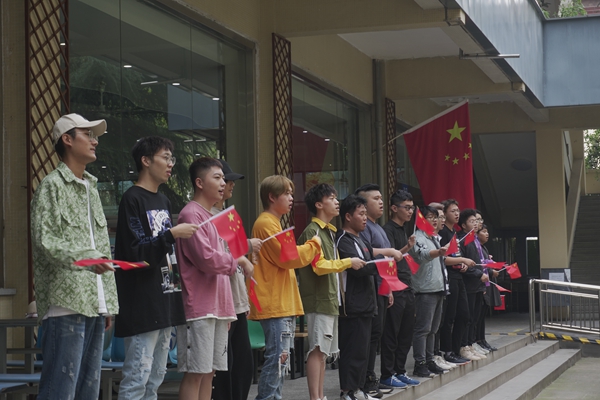 中午12點(diǎn)10分,音樂系100余名師生匯聚到雁塔校區(qū)學(xué)生餐廳門外。隨著《歌唱祖國(guó)》音樂旋律響起,大家一邊揮舞著手中的五星紅旗,一邊唱起《今天是你的生日》《輝煌明天》《我愛你中國(guó)》三首歌曲。三首歌曲慷慨激昂、振奮人心,表達(dá)了我校師生對(duì)祖國(guó)的崇敬和熱愛之情,展示了我校師生積極向上的精神風(fēng)貌。師生們通過“快閃”這樣的新穎形式,唱響了熱愛黨、熱愛祖國(guó)、熱愛學(xué)校、熱愛生活的主旋律,令人耳目一新,贏得了在場(chǎng)師生的陣陣掌聲。