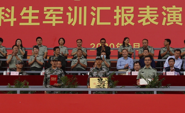 學生工作部部長趙健宣讀了學?!蛾P于表彰2020級本科生軍訓工作先進集體和優(yōu)秀個人的決定》。與會領導分別為獲獎集體和個人頒發(fā)獲獎證書。