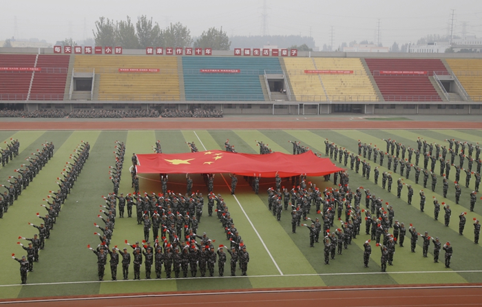 軍訓匯報表演大會前,學校舉行了莊嚴的升國旗儀式。