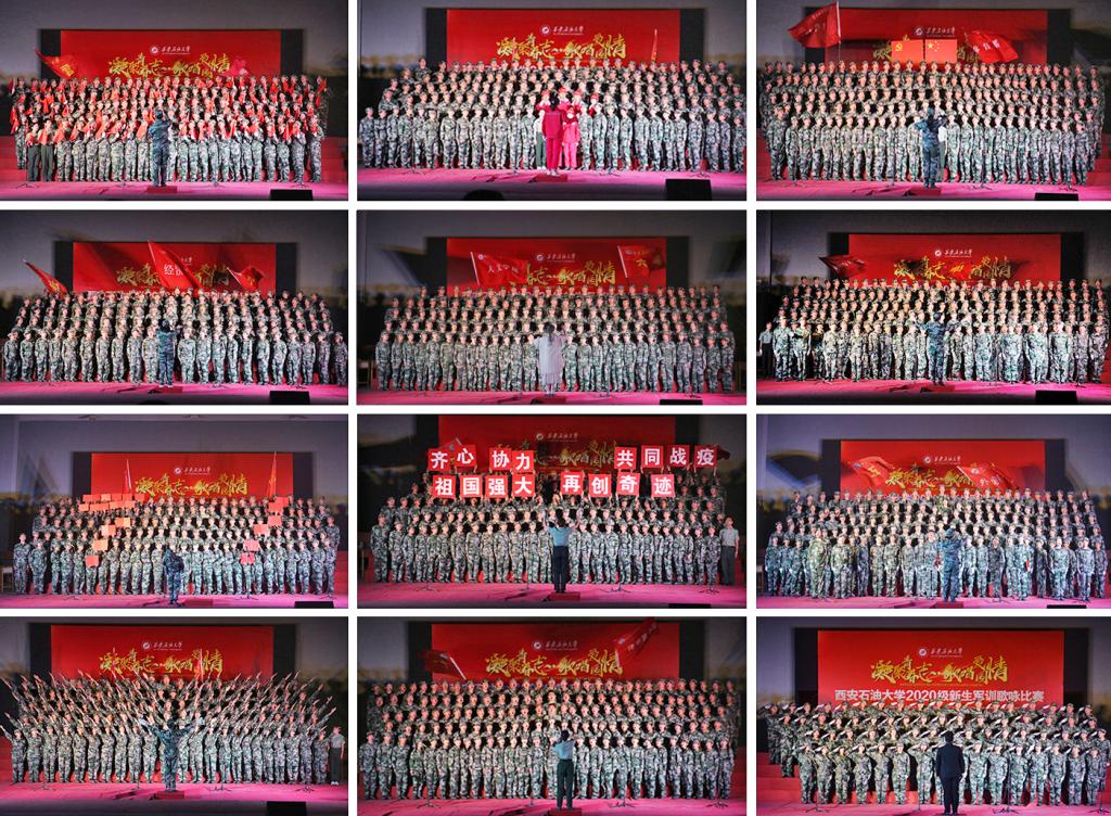 比賽在校歌《輝煌明天》慷慨激昂的歌聲中拉開帷幕,我校2020級新生通過雄渾有力的歌聲表達了對母校的熱愛。歌曲《踏著鐵人腳步走》唱出了中國人民不怕吃苦、敢于奮進的氣魄;鏗鏘有力的《我為祖國獻石油》將石油工人氣壯山河的豪邁氣質(zhì)表現(xiàn)得淋漓盡致,激勵著同學們發(fā)奮圖強、不忘初心,共創(chuàng)美好明天;歌曲《在燦爛的陽光下》演繹了改革開放以來的發(fā)展歷程,告訴我們當今幸福生活的來之不易;《再一次出發(fā)》唱出了我們偉大的復興夢想;熱情飽滿的《祖國不會忘記》充分展現(xiàn)了無私奉獻、勇敢拼搏的愛國情;熱血沸騰的《我們走在大路上》意氣風發(fā)、斗志昂揚;雄赳赳、氣昂昂的《保衛(wèi)黃河》演繹了中國人民不畏豪強、自強不息的偉大民族精神。由軍訓旅所有教官帶來的《強軍戰(zhàn)歌》,充分體現(xiàn)了中國軍人的優(yōu)良作風和愛國情懷。最后,大學生藝術團帶來了精彩的舞蹈表演《荷風盛世》,全場師生共唱歌曲《紅旗飄飄》,舞出了新時代社會和諧安康的盛世場景,唱出了我們新一代年輕人的朝氣蓬勃、自強不息與家國情懷!