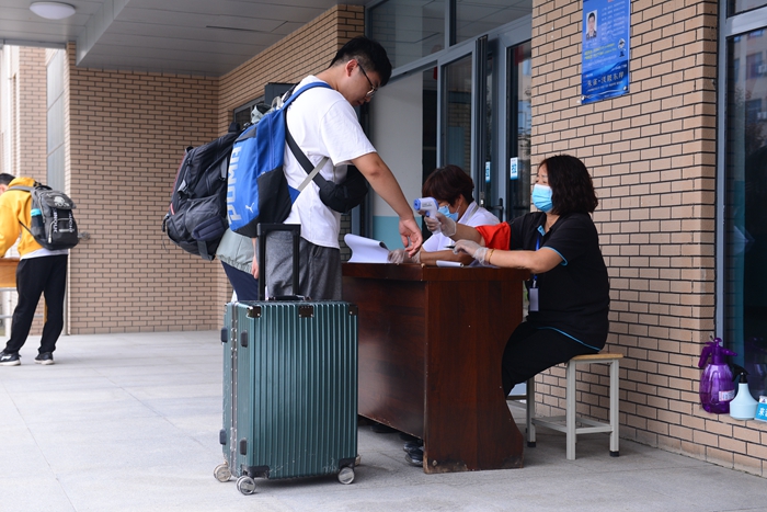 離離暑云散,裊裊涼風(fēng)起。821日至23日,我校二、三、四年級(jí)本科生,二、三年級(jí)研究生順利返校。同學(xué)們依次通過(guò)返校憑證確認(rèn)、健康碼及動(dòng)態(tài)行程碼核驗(yàn)、體溫測(cè)量、行李消毒等流程,有序步入闊別許久的校園。