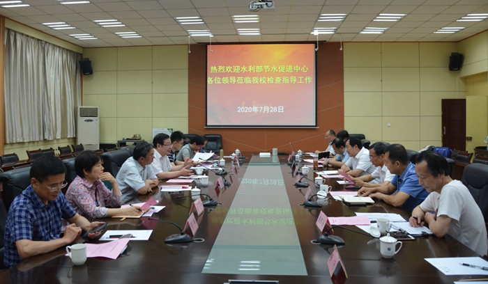 7月28日下午,水利部節(jié)水中心副主任劉國華,水利專家王家先、付新峰,陜西省水利廳節(jié)水辦主任吳萍,西安市水務局節(jié)水中心副主任張峰等一行八人來我校檢查指導校園節(jié)水工作。匯報會在雁塔校區(qū)第一會議室召開。我校校長李天太、黨委副書記張木,黨政辦公室、后勤管理處相關負責人參加會議。