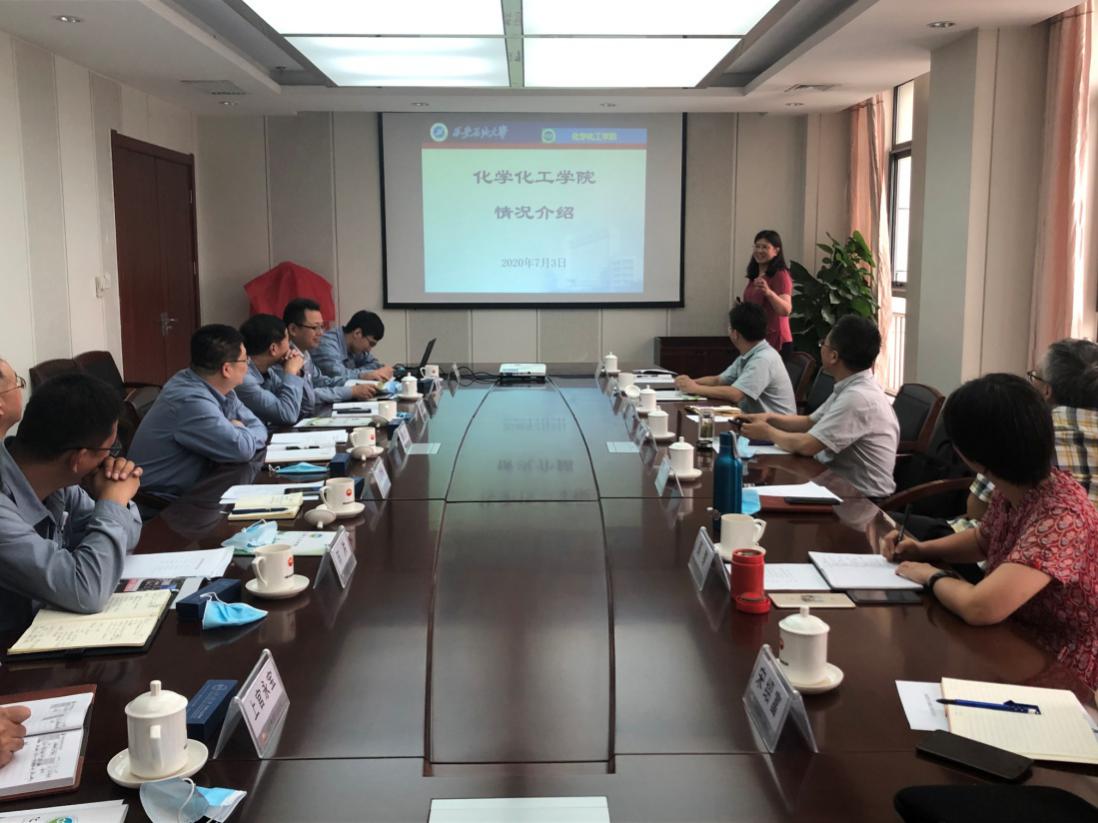 校企雙方圍繞人才培養(yǎng)模式、技術(shù)研發(fā)、疫情之下行業(yè)就業(yè)趨勢(shì)等內(nèi)容進(jìn)行深入交流。化學(xué)化工學(xué)院黨委書(shū)記司馬文龍表示,學(xué)院歷來(lái)重視學(xué)生綜合實(shí)踐能力培養(yǎng),希望今后進(jìn)一步實(shí)現(xiàn)資源共享,推動(dòng)產(chǎn)教融合、協(xié)同育人機(jī)制,形成發(fā)展合力,提升應(yīng)用型人才培養(yǎng)的質(zhì)量,提高學(xué)生就業(yè)質(zhì)量?;瘜W(xué)化工學(xué)院長(zhǎng)王文珍介紹了學(xué)院歷年發(fā)展沿革及發(fā)展特色。學(xué)院黨委副書(shū)記高黎、副院長(zhǎng)李善建、教授代表宋紹富,分別就學(xué)生培養(yǎng)、科研合作、實(shí)踐實(shí)習(xí)、畢業(yè)生就業(yè)等與公司進(jìn)行了深入交流。