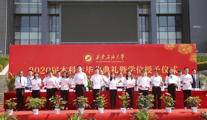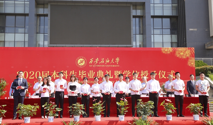 典禮上,校黨委書記賽云秀宣讀《西安石油大學(xué)關(guān)于表彰2020屆優(yōu)秀畢業(yè)生的決定》,校黨委副書記張木宣讀《西安石油大學(xué)校友總會(huì)關(guān)于聘任2020屆年級(jí)校友理事的決定》,副校長(zhǎng)陳軍斌宣讀《西安石油大學(xué)關(guān)于2020屆本科學(xué)生準(zhǔn)予畢業(yè)、頒發(fā)畢業(yè)證和授予學(xué)士學(xué)位的決定》。