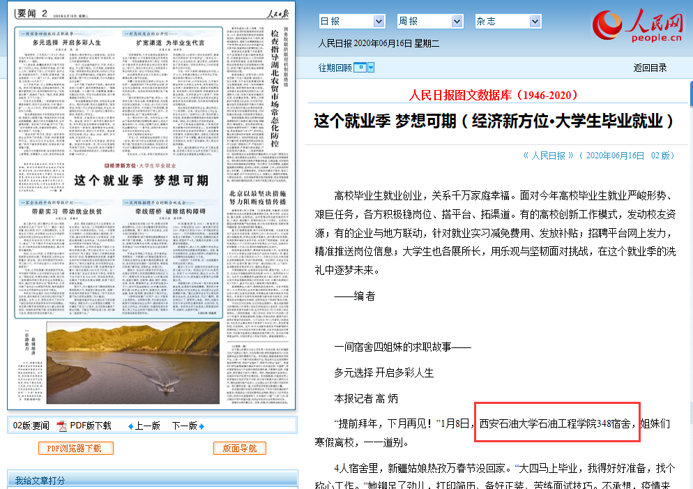 近日,《人民日?qǐng)?bào)》2版以《一間宿舍四姐妹的求職故事——多元選擇,開啟多彩人生》為題,對(duì)我校石油工程學(xué)院348宿舍四姐妹的求職經(jīng)歷進(jìn)行了報(bào)道。