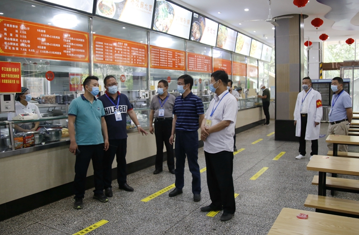 527日上午,由雁塔區(qū)教育局鄒轉(zhuǎn)景、張永剛,雁塔區(qū)市場(chǎng)監(jiān)督管理局衛(wèi)春濤,雁塔區(qū)衛(wèi)健局王階昌,雁塔區(qū)疾控中心楊琪組成的雁塔區(qū)教育機(jī)構(gòu)疫情防控第五巡回檢查指導(dǎo)組一行五人來到我校雁塔校區(qū)實(shí)地檢查疫情防控工作。副校長(zhǎng)蘇文甫及相關(guān)部門負(fù)責(zé)人陪同檢查。