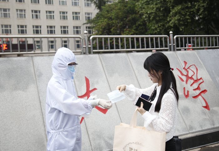 在各學(xué)院的報(bào)到點(diǎn),同學(xué)們還領(lǐng)取了學(xué)校為大家準(zhǔn)備的放有口罩、溫度計(jì)、酒精消毒棉片等防護(hù)用品的防疫愛心包?!敖K于回到了久別的校園,感覺(jué)非常親切,學(xué)校的安排非常細(xì)致,還給我們免費(fèi)發(fā)送了一次性口罩和體溫計(jì),既細(xì)心又貼心。學(xué)校所做的一切復(fù)學(xué)準(zhǔn)備都很充分,我要為學(xué)校點(diǎn)贊?!笔凸こ虒W(xué)院研究生劉毅說(shuō)。