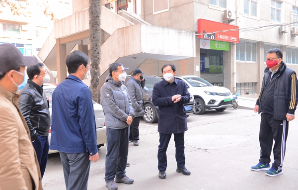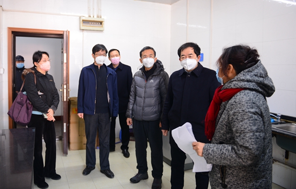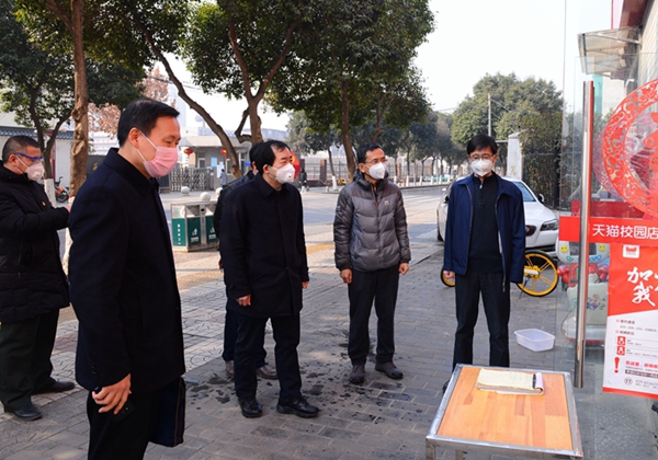 2月11日上午,學(xué)校疫情防控工作領(lǐng)導(dǎo)小組組長(zhǎng)、校長(zhǎng)李天太,領(lǐng)導(dǎo)小組副組長(zhǎng)、校黨委副書記張木,領(lǐng)導(dǎo)小組副組長(zhǎng)、副校長(zhǎng)蘇文甫帶隊(duì)檢查了校園生活物資供應(yīng)和防控措施落實(shí)情況,慰問一線值守人員,對(duì)疫情防控工作提出要求。