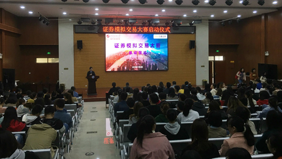 2.了解企業(yè)用人需求,開設有針對性的專業(yè)競賽。為擬參與證券投資的同學搭建一個模擬證券交易的平臺和環(huán)境,進行專業(yè)知識教育和模擬交易,幫助同學們盡快熟悉證券交易規(guī)則,為后續(xù)的學習和工作打下良好基礎。11月4日,經(jīng)濟管理學院聯(lián)合華鑫證券主辦,經(jīng)濟系教工黨支部和經(jīng)濟系學生黨支部聯(lián)合承辦的證券模擬交易大賽正式啟動。啟動儀式在鄠邑校區(qū)經(jīng)管人文樓118多功能廳舉行。本次大賽的啟動就是要給學生合理“增負”,這不僅有助于學生們做到知行合一,將理論知識轉化為實踐能力,也有助于專業(yè)建設和學科發(fā)展。