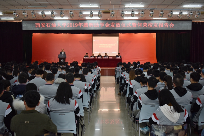 11月20日下午,2019年騰輝助學(xué)金發(fā)放儀式暨何榮校友報(bào)告會(huì)在鄠邑校區(qū)騰輝大學(xué)生活動(dòng)中心舉行。校黨委副書記張木,西安騰輝電氣有限公司總經(jīng)理、“騰輝助學(xué)金”主要出資人、我校校友何榮出席儀式。學(xué)生工作處、合作發(fā)展處、機(jī)械工程學(xué)院負(fù)責(zé)人,2019年騰輝助學(xué)金獲得者,西安騰輝電氣有限公司員工代表,以及各院系師生代表共500余人參加了活動(dòng)。