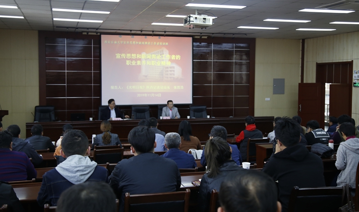 [宣傳思想]我校邀請(qǐng)《光明日?qǐng)?bào)》陜西記者站站長(zhǎng)張哲浩作《宣傳思想和新聞?shì)浾摴ぷ髡叩穆殬I(yè)素養(yǎng)和職業(yè)精神》報(bào)告