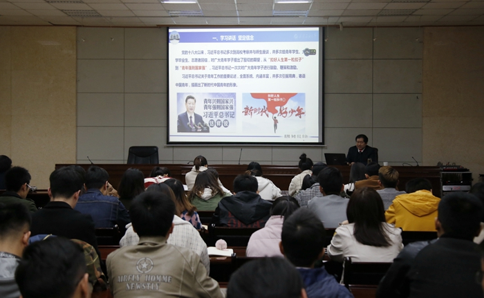 根據(jù)“不忘初心、牢記使命”主題教育部署安排,11月7日下午、8日下午,校長李天太以《堅定信念勇于擔(dān)當(dāng)立志成才》為題,分別在鄠邑校區(qū)、雁塔校區(qū)為本科生、研究生講授了主題教育專題黨課暨思想政治教育報告會。本科生報告會由鄠邑校區(qū)管理辦公室主任覃彪主持,研究生報告會由研究生工作部部長高榮芳主持。