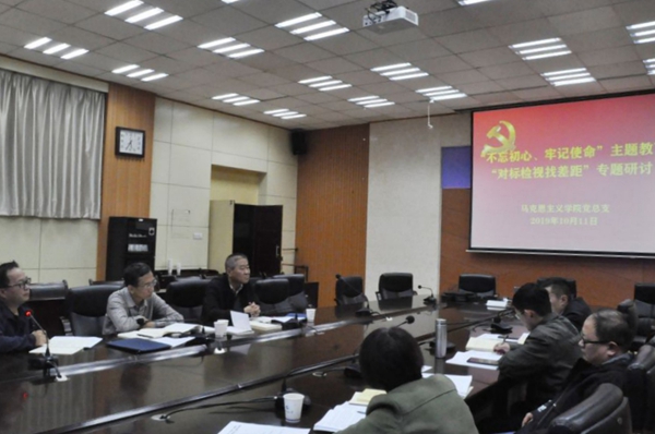 根據(jù)學(xué)院黨總支主題教育學(xué)習(xí)計(jì)劃安排,與會(huì)人員就第三個(gè)專題“對(duì)標(biāo)檢視找差距”進(jìn)行了交流研討。李淵書記講到,通過“不忘初心、牢記使命”主題教育,自身思想受到了洗禮并更加堅(jiān)定了理想信念,作為馬克思主義學(xué)院黨總支書記深感責(zé)任重大、任務(wù)艱巨,要帶好班子、帶好思政課教師隊(duì)伍,努力完成黨交給我們“立德樹人”的根本任務(wù)。結(jié)合前期調(diào)研情況,查找到自身還要很多需要提高的地方:一是對(duì)學(xué)院教師的成長(zhǎng)和關(guān)懷還不夠,要努力為青年教師搭建更多的交流平臺(tái)提供更多的學(xué)習(xí)機(jī)會(huì),在職稱評(píng)定、教學(xué)科研等方面為教師爭(zhēng)取更多的政策,更好的發(fā)揮教師的積極性、主動(dòng)性、創(chuàng)造性。二是對(duì)思政課教師的思想引領(lǐng)和政治教育還不夠,要努力以黨建工作為抓手,充分發(fā)揮黨員的示范引領(lǐng)作用,將集體備課會(huì)與主題教育學(xué)習(xí)活動(dòng)相融合,加強(qiáng)師德師風(fēng)建設(shè),切實(shí)提升思政課教師的業(yè)務(wù)能力、授課水平,努力做到習(xí)近平總書記對(duì)思政課教師政治要強(qiáng)、情懷要深、思維要新、視野要廣、自律要嚴(yán)、人格要正的要求,為學(xué)生奉獻(xiàn)“精彩一課”。肖發(fā)榮副院長(zhǎng)從三方面談了體會(huì),一是通過主題教育集中學(xué)習(xí)和個(gè)人自學(xué),真正做到了理論學(xué)習(xí)有收獲、思想政治受洗禮,對(duì)自身有很大提升。二是通過調(diào)研活動(dòng),了解全校本、碩、博學(xué)生對(duì)思政課教學(xué)的意見,發(fā)現(xiàn)問題,找出差距,為下一步整改落實(shí)提供了依據(jù)和參考。打鐵還需自身硬,作為一名思政課教師要高標(biāo)準(zhǔn)、嚴(yán)要求,不斷提高自己的理論水平和教學(xué)水平,在抓好學(xué)生課堂教學(xué)的同時(shí),還要積極參與理論宣講等社會(huì)服務(wù)活動(dòng)。作為主管教學(xué)的副院長(zhǎng),要努力推動(dòng)思政課改革創(chuàng)新,不斷增強(qiáng)思政課的思想性、理論性、親和力和針對(duì)性。三是要將主題教育學(xué)習(xí)落到實(shí)處,切實(shí)做到情系師生解難題。與會(huì)教工黨支書記潘景余、孫一仰老師也分別作了交流發(fā)言,他們談到思政課教師首先要堅(jiān)持學(xué)習(xí),不斷提升自身的理論水平,多在課堂教學(xué)上下功夫,提升教學(xué)質(zhì)量,更好的用習(xí)近平新時(shí)代中國(guó)特色社會(huì)主義思想鑄魂育人。