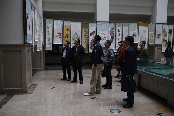 祝壽會之前,賽書記、李校長一行還參觀了離退休教職工書畫、攝影展覽。