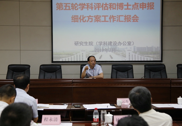 會(huì)上,高教研究與評(píng)估中心負(fù)責(zé)人匯報(bào)了院(系)發(fā)展數(shù)據(jù)檢測(cè)基本信息統(tǒng)計(jì)情況。研究生院(學(xué)科建設(shè)辦公室)負(fù)責(zé)人匯報(bào)了第五輪學(xué)科評(píng)估準(zhǔn)備情況。我校10個(gè)學(xué)院的14個(gè)一級(jí)學(xué)科負(fù)責(zé)人依次結(jié)合第五輪學(xué)科評(píng)估和博士點(diǎn)申報(bào)細(xì)化方案,詳細(xì)匯報(bào)了各學(xué)科細(xì)化方案指標(biāo)定量分析、擬定目標(biāo)、具體措施及落實(shí)完成情況。