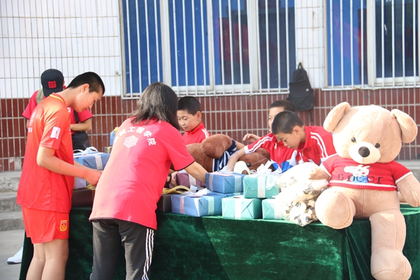 大愛無言,真愛無疆。小朋友們對師生們的到來舉行了熱烈的歡迎儀式,東周兒童村村民委員會主任楊彪也對大家的到來表示了最熱烈的歡迎和衷心的感謝,并充分肯定了本次活動的意義。他表示,這二十多年來,孩子們在和大哥哥大姐姐們相處之后,都逐漸走出了生活的陰影,大都長高了,長胖了,臉上也露出了童年的天真和歡笑。同時(shí),機(jī)械工程學(xué)院黨委書記田黨宏也對小朋友們進(jìn)行了勉勵和鼓舞,并表示機(jī)械工程學(xué)院的全體師生會一直將愛心持續(xù)下去。學(xué)生工作部部長趙健和人文學(xué)院黨委書記余小勇代表此行的志愿者把屬于孩子們的心愿禮物親自送到他們的手中。由音樂系和少數(shù)民族的同學(xué)們?yōu)榇蠹規(guī)砹斯艠泛献唷毒艃骸贰洞航ㄔ乱埂贰犊鞓返柠溛鱽砥铡贰锻米游琛返染始姵实墓?jié)目,全體師生與孩子們一起互動,共同聯(lián)歡,一同沉浸在這愛的海洋里。