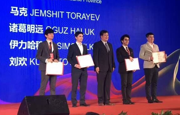 省教育廳廳長王建利為我校留學(xué)生馬克(右一)頒發(fā)證書