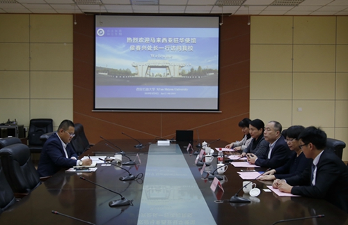 陳軍斌副校長對(duì)侯春興參贊來訪表示歡迎,并從學(xué)校概況、學(xué)科建設(shè)、國際交流等方面介紹了我校的基本情況。他談到,中馬兩國在經(jīng)貿(mào)、科技、教育和文化等領(lǐng)域交往歷史悠久,希望駐馬來西亞使館教育處能為我校與馬來西亞高校之間牽線搭橋,簽署具體的合作協(xié)議,在科學(xué)研究、互派留學(xué)生、實(shí)驗(yàn)室建設(shè)等方面達(dá)成長期穩(wěn)定的合作。
