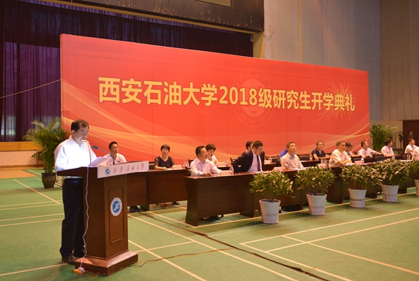 李天太校長在致辭中向新入校的全體研究生表示歡迎,并與新入學(xué)研究生一起分享了67年來西石大歷屆優(yōu)秀校友在奮斗與實踐中譜寫的精彩華章。在新的起點上,李校長向同學(xué)們提出了五點要求和希望。一是要志存高遠,胸懷家國天下,努力成為有思想、有溫度、有品質(zhì)、有家國情懷的科研工作者。二是要勇于創(chuàng)新,不負青春韶華,珍惜時光,勤勉學(xué)習(xí),爭取在研究生期間做到“3個50”(即讀50本書、認識50位老師、參加50場活動),爭取早日產(chǎn)出創(chuàng)新性的科研成果。三是要激發(fā)興趣,快樂從事科研,體驗解決困難問題的興奮,享受對認定后的學(xué)術(shù)研究方向執(zhí)著探求的快樂,注重身心和諧。四是要溝通協(xié)作,培養(yǎng)團隊意識,不斷增強與他人合作、善于溝通的優(yōu)秀科研人才的基本素質(zhì)。五是要誠信求真,恪守學(xué)術(shù)良知,守住道德底線,立足自己的研究領(lǐng)域和方向,久久為功,在學(xué)術(shù)研究和求取真知的道路上行穩(wěn)致遠。