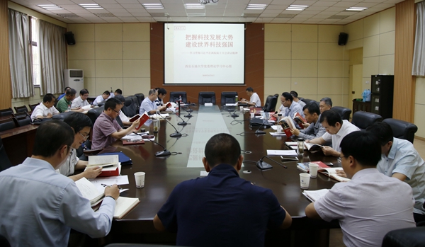 李華副校長在討論中分享了學(xué)習(xí)心得,并結(jié)合學(xué)校實(shí)際,重點(diǎn)闡述了學(xué)??萍脊ぷ魅绾闻c習(xí)近平總書記在兩院院士大會(huì)上重要講話精神有機(jī)結(jié)合問題,提出要以習(xí)近平總書記重要講話精神指導(dǎo)學(xué)校科技體制改革,強(qiáng)化創(chuàng)新思維,提高科技質(zhì)量,探索建立符合學(xué)校實(shí)際的科技創(chuàng)新評(píng)價(jià)體系和獎(jiǎng)勵(lì)制度。