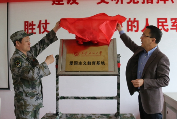 簽約儀式上,校黨委副書記雷西合與32144部隊副政委徐洪剛代表雙方簽署《共建共育協議書》,并共同為“西安石油大學愛國主義教育基地”揭牌。雙方一致同意將通過愛國主義教育基地等多種共建形式,全面開展共建共育工作,進一步做好大學生革命傳統教育和愛國主義、革命英雄主義教育和部隊官兵文化知識、專業(yè)技能培訓工作,真正實現資源共享、優(yōu)勢互補。