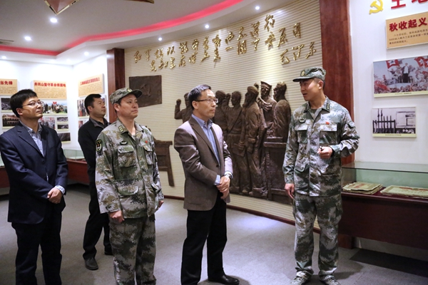 校黨委副書記雷西合、副校長蘇文甫一行9人還在部隊領導的陪同下共同觀看了部隊宣傳片,參觀了開創(chuàng)“支部建在連上”先河的紅一連連史館、連隊榮譽室、官兵宿舍和連隊部分武器裝備。