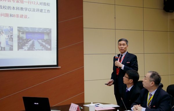 校長屈展代表學校作本科教學工作審核評估整改檢查匯報。他從學校審核評估整改工作的組織和落實、做法與成效以及本科教學工作下一步的努力方向三個方面,向專家組作了我校具體整改工作完成和進展情況匯報。他說,一年來,學校以審核評估整改工作為抓手,在各方面開展了大量具體細致的工作,本科教學工作取得了較大的進步和成效。今后,學校將進一步加強內涵建設,深化教學改革,提高育人質量,以扎實的整改成效推動學校本科教學工作和人才培養(yǎng)水平再上新的臺階。