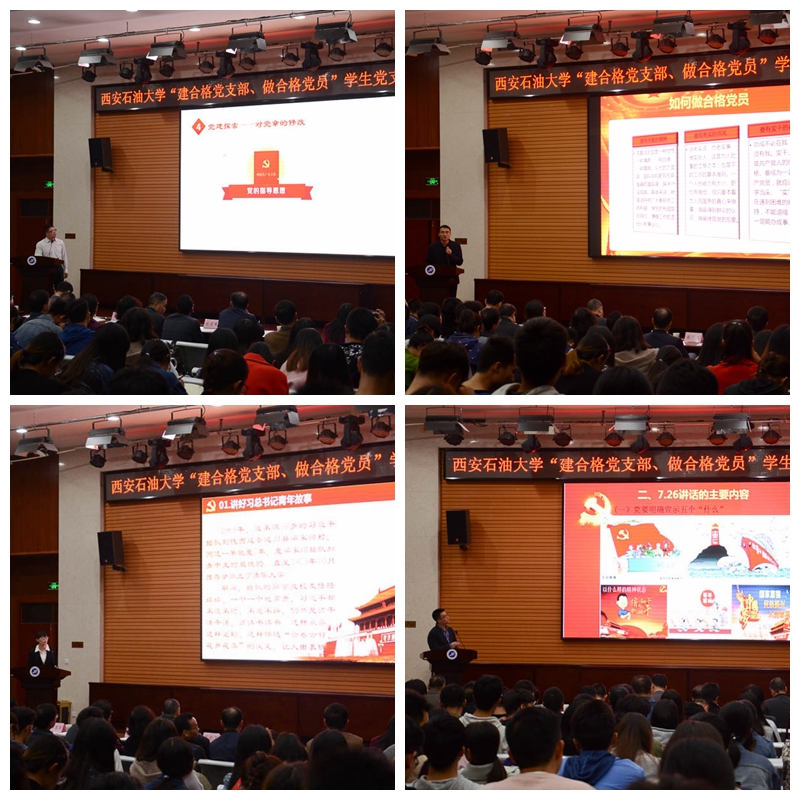 在黨的十九大勝利召開之際,為加強(qiáng)黨支部書記工作交流,落實(shí)“三會一課”制度,推進(jìn)“兩學(xué)一做”學(xué)習(xí)教育常態(tài)化制度化,10月23日、10月24日晚,我校分別在雁塔校區(qū)學(xué)術(shù)報告廳和鄠邑校區(qū)就業(yè)指導(dǎo)中心多功能廳成功舉辦了“建合格黨支部、做合格黨員”教工黨支部書記和學(xué)生黨支部書記講黨課比賽。校黨委副書記雷西合出席大賽并講話。校黨委各部(辦)、院(系)級單位黨組織部分負(fù)責(zé)人和馬克思主義學(xué)院教師代表擔(dān)任比賽評委。各院(系)級單位黨組織書記、副書記,全校各黨支部書記及委員和黨員代表觀摩了本次比賽。