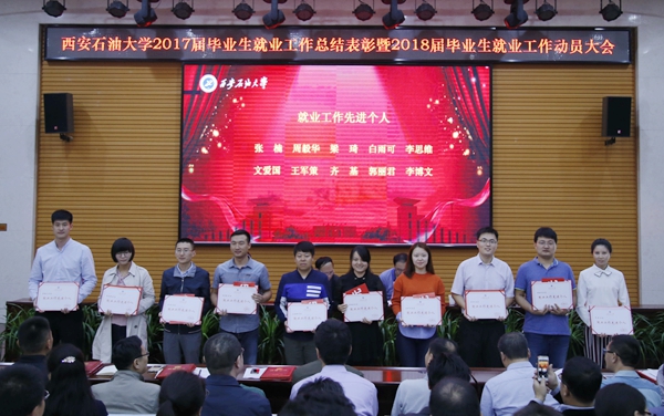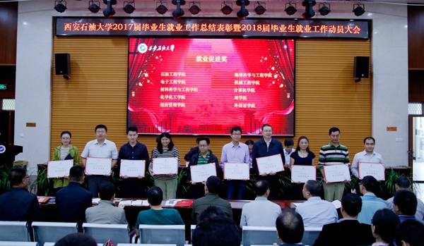 副校長楊戰(zhàn)社宣讀了關(guān)于2017屆畢業(yè)生就業(yè)工作先進集體和先進個人的表彰決定。與會領(lǐng)導(dǎo)為7項集體獎獲獎單位和15名先進個人頒獎。