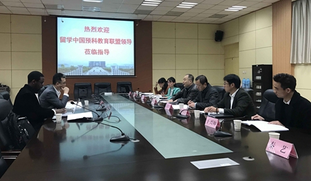 陳軍斌副校長首先代表學校向周涌秘書長、Tadi經(jīng)理來校開展預科中心市場推廣工作調(diào)研表示熱烈歡迎,并向聯(lián)盟將我校設(shè)為首批預科中心學校表示衷心感謝。他表示,學校將抓緊預科中心的各項籌備工作,要在聯(lián)盟機制下認真做好來華留學預科教育工作。
