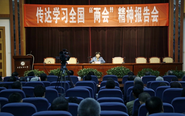[校園要聞]校黨委中心組理論學(xué)習(xí)擴大會學(xué)習(xí)全國“兩會”精神