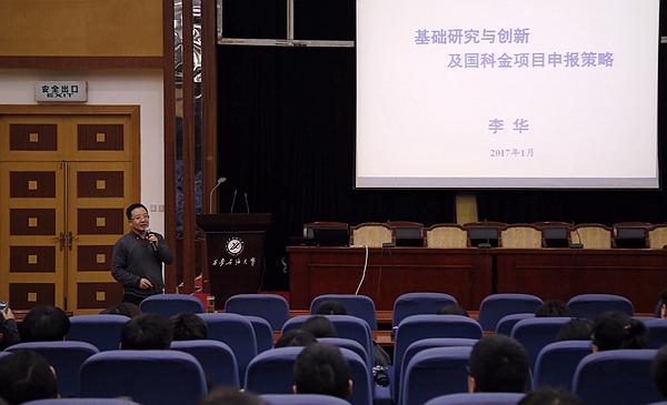 李華副校長為大家作了題為《基礎(chǔ)研究與創(chuàng)新及國家科學(xué)基金申報(bào)策略》的專題報(bào)告。他結(jié)合自己的科研經(jīng)歷和擔(dān)任自然科學(xué)基金項(xiàng)目評(píng)審專家的經(jīng)驗(yàn),耐心細(xì)致地講解了國家科學(xué)基金項(xiàng)目的類型、資助情況、申請書撰寫技巧、專家評(píng)議標(biāo)準(zhǔn),以及2017年度國家基金委工作部署情況等,強(qiáng)調(diào)在基金申報(bào)時(shí)要聚焦基礎(chǔ)和學(xué)科前沿問題,扎實(shí)認(rèn)真地做好具體工作。他鼓勵(lì)廣大教師在申報(bào)國家科學(xué)基金的過程中,要樹立信心,堅(jiān)持不懈,克服畏難心理,深入挖掘自身潛力,提升申報(bào)質(zhì)量;要針對重點(diǎn)學(xué)科和領(lǐng)域集中申報(bào),力爭在2017年度國家科學(xué)基金申報(bào)中取得佳績。李華副校長的報(bào)告內(nèi)容豐富、生動(dòng)精彩,報(bào)告結(jié)束后他還解答了大家提出的各種問題。